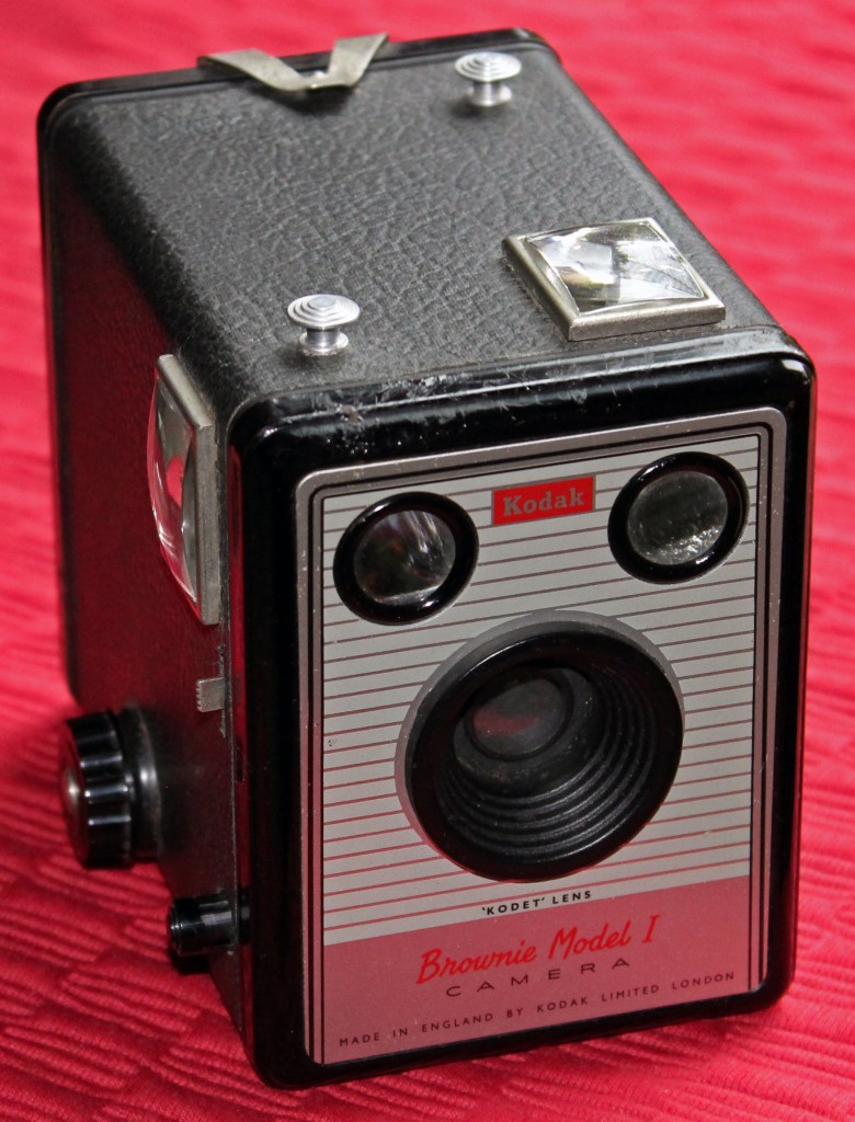 The Kodak Brownie Model I is not a cine camera but rather a basic stills photography ‘Box’ camera manufactured in England during the 1950s.